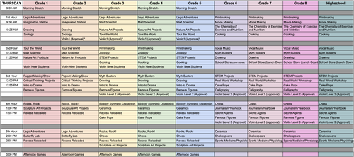 Thursday Class Schedule (Fall 2026)
