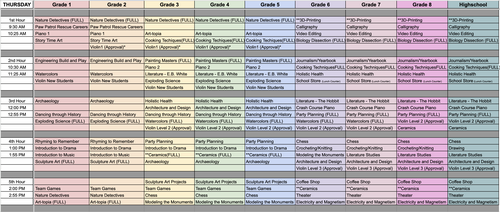 *Violin classes require students to rent a violin for the entire school year. Cost to rent is approximately $19 per month.